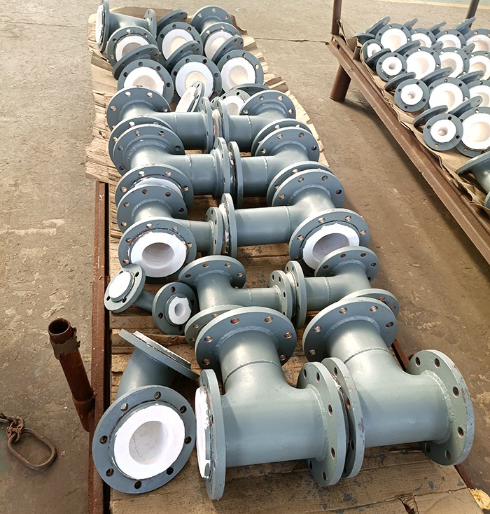 內襯四氟管道管件是以普通碳素鋼管作為基體,內襯化學穩定性優良的熱塑性聚四氟乙烯(英文縮寫為Teflon或[PTFE,F4])塑料,經特定的工藝加工而成。它既有鋼管的機械性能,又有四氟塑料的耐強酸強堿腐蝕,耐高溫,不易生長微生物等特點,是輸送強酸、強堿、工業鹽及有強烈腐蝕性氣體等介質的理想管道。